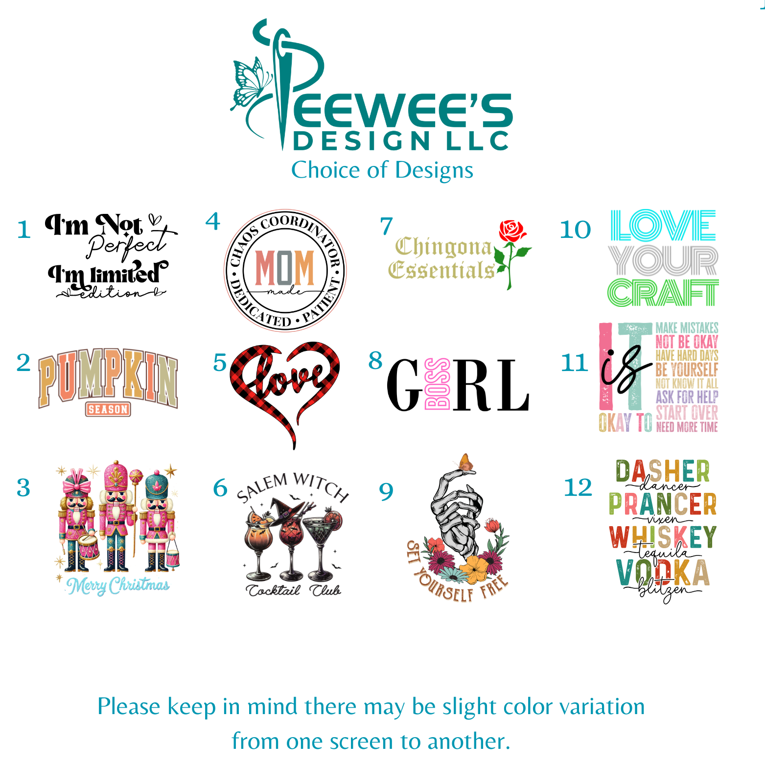 Design Mediums: We carefully select the best transfer method for each material and design to ensure a high-quality finish.